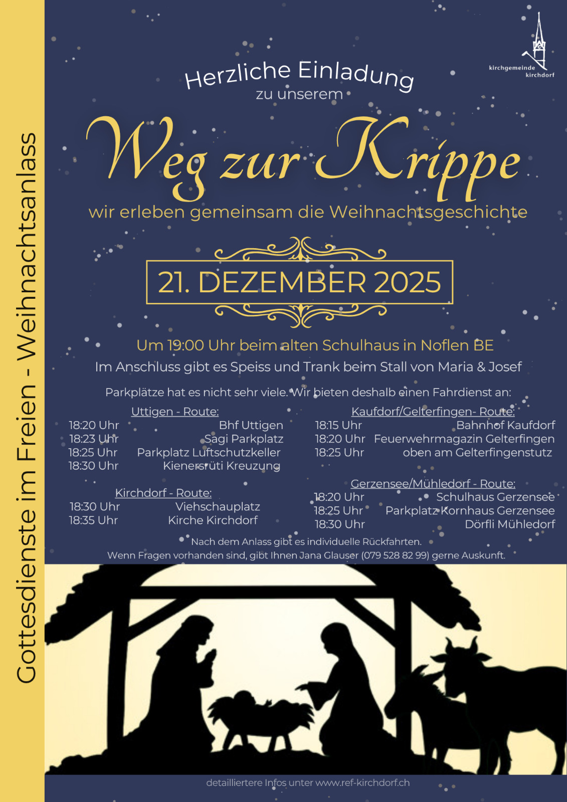 Am 21. Dezember 2025 um 19.00 Uhr beim alten Schulhaus in Noflen (BE).